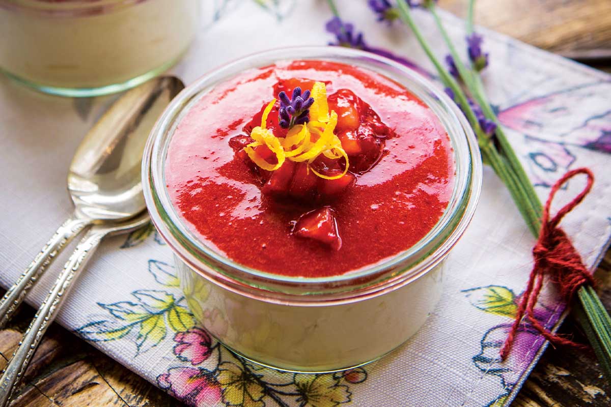 Swap classic chocolate mousse for this lemony strawberry version. The silky-smooth mousse is layered with homemade raspberry jam, which comes together in just a few minutes. Made with 10 simple ingredients, this creamy cloud-like dessert is also plant based as it uses coconut milk and dairy-free yogurt. Garnish with pistachios or almonds for a satisfying crunch.