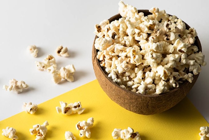 Coconut oil and popcorn is a match made in snacking heaven. For easy homemade popcorn, use 2 Tbsp (30 mL) coconut oil to pop 1/3 cup (80 mL) organic kernels in a covered pot on your stovetop.