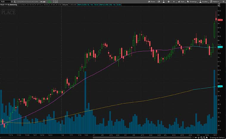 The recent hike is likely due to two Wall Street firms upgrading the children’s apparel retailer ahead of its earnings report later this week. Monness Crespi Hardt analyst Jim Chartier upgraded the retailer from neutral to buy and set a $93-per-share price target on the stock.