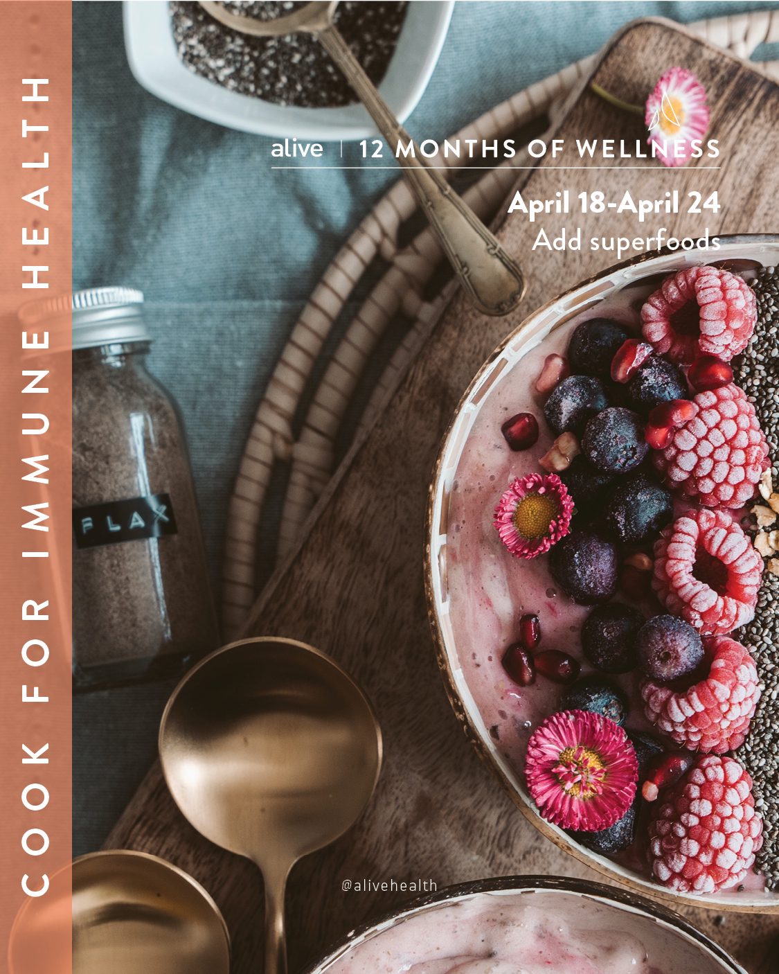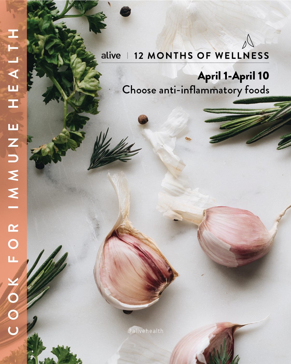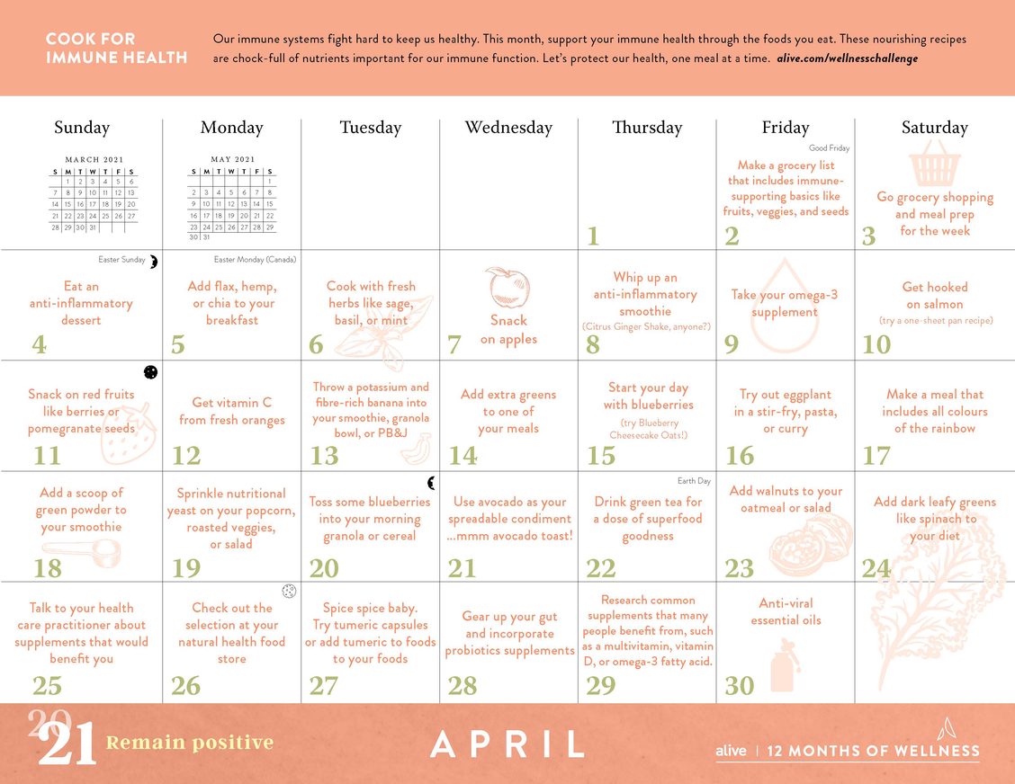 Next up? In April, we challenge you to cook for immune health. This is more than just an excuse to put beloved immune-boosting ingredients like ginger and garlic in EVERYTHING. This is your chance to appreciate how the foods you eat can support your immunity.