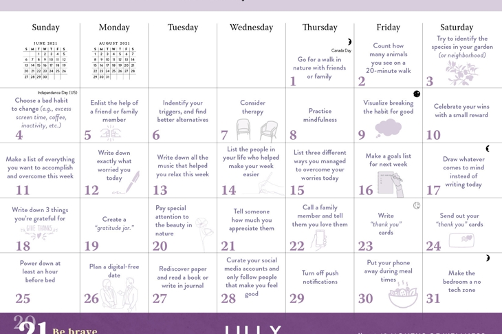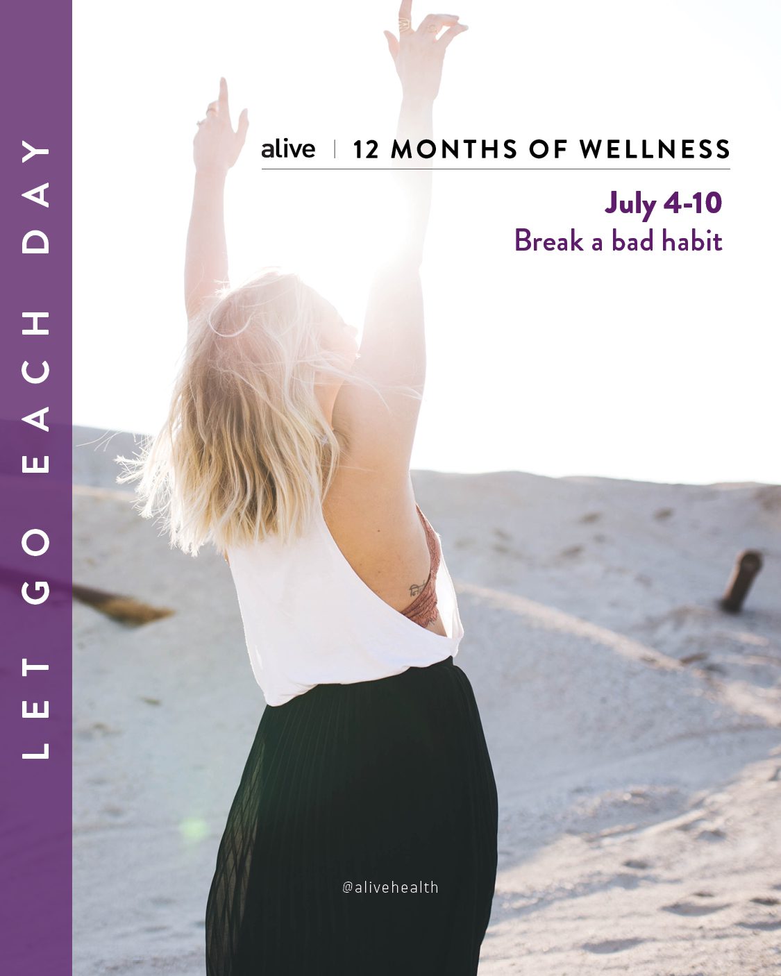 In July, we challenge you to let go of behaviors that aren’t beneficial to your well-being. From screen time to caffeine to inactivity to alcohol, let go a little each day and enjoy your life with a renewed sense of freedom.