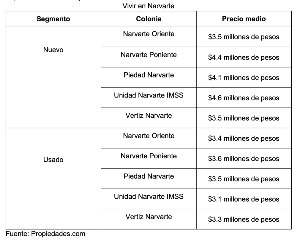 On the other hand, Narvarte is made up of five colonies. Here, the prices of the new and used apartments:
