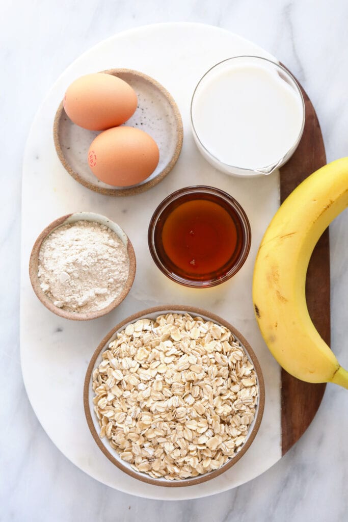 The main ingredients in baked oatmeal are typically oatmeal, eggs, and milk. We’re sharing other common ingredients below for you to stock up on!