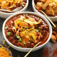 This ground beef chili can easily be made in the slow cooker or Instant Pot. While we haven’t tried either of these methods, you can follow a similar method to the other crockpot and Instant Pot chili recipes we have on Fit Foodie Finds.