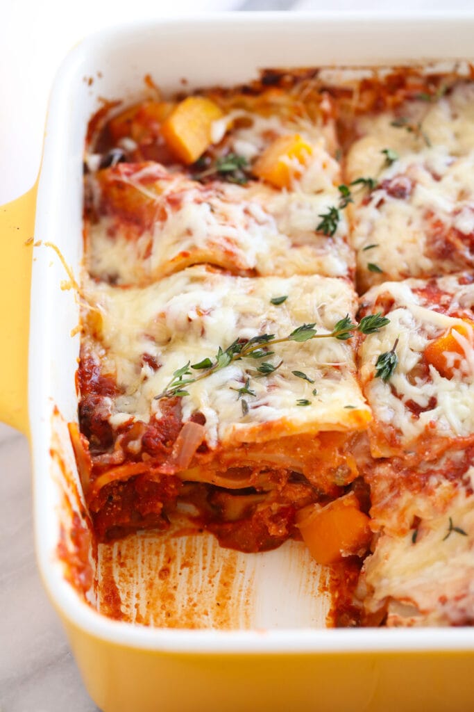 - It is packed with vegetables! Butternut squash, mushrooms, and the tomato sauce add so many vitamins and minerals to just one piece of lasagna.