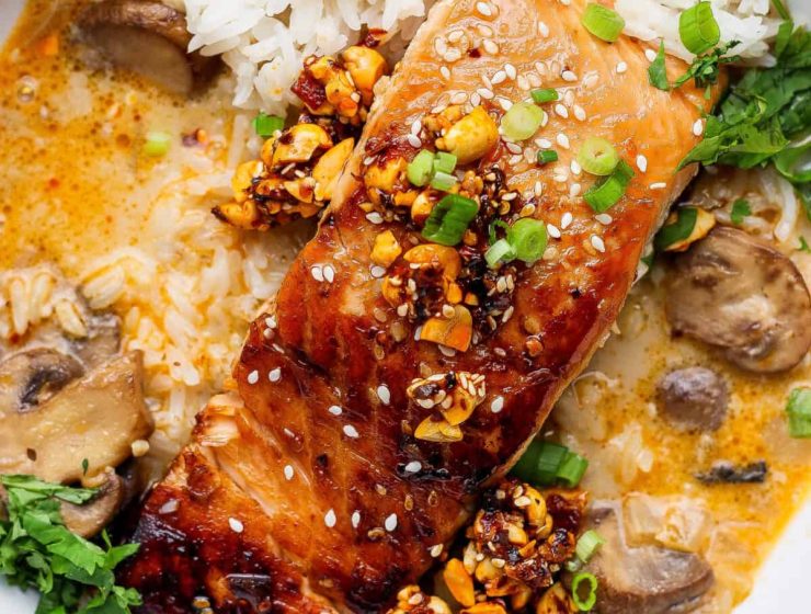 Chili Crunch Salmon with Creamy Coconut Brothy Rice This brothy salmon and rice recipe is…