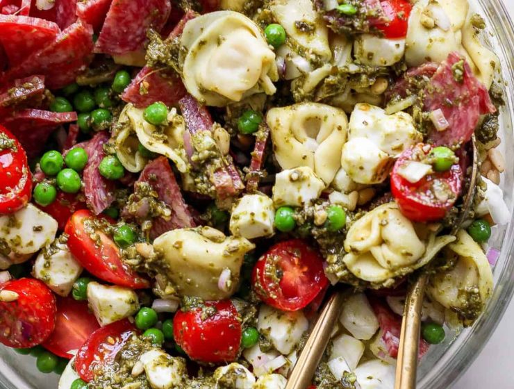 Pesto Tortellini Pasta Salad Made with cheese tortellini, fresh tomatoes, salami, and mozzarella, this Pesto…