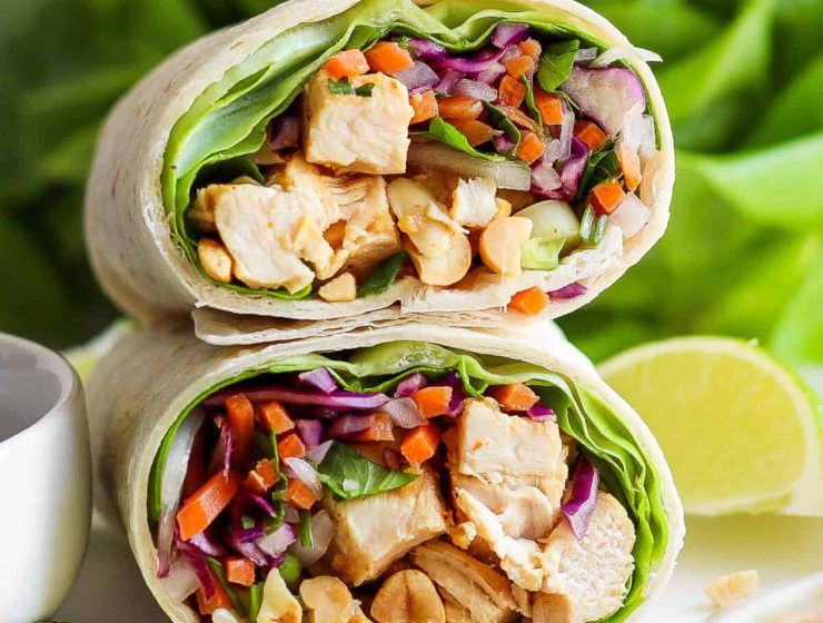 Peanut Chicken Wrap Tender chicken, crunchy veggies, and a spicy peanut sauce make this Peanut…