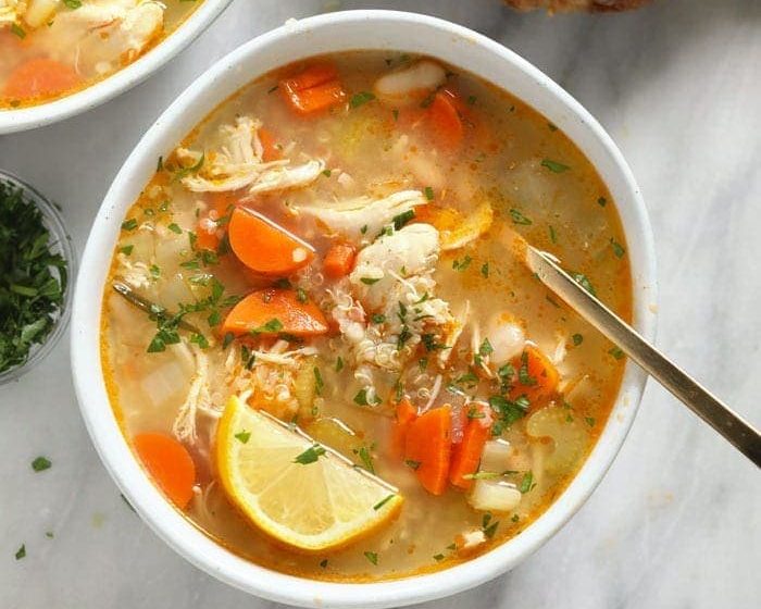 Chicken Quinoa Soup Chicken quinoa soup warms you up from the inside out! This stovetop…