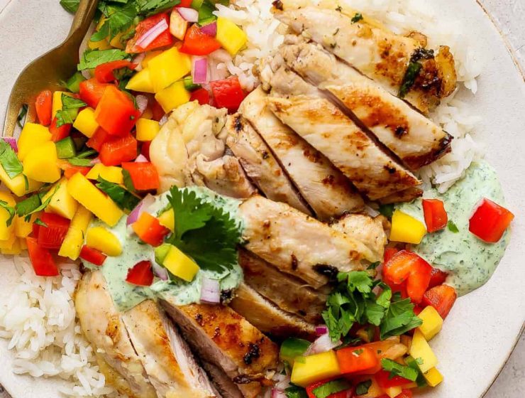 Cilantro Lime Chicken with Mango Salsa This Cilantro Lime Chicken is served next to a…
