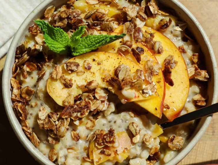 Peach Cobbler Oatmeal It’s peach season, party people! My fluffy peach cobbler oatmeal is a summer morning…