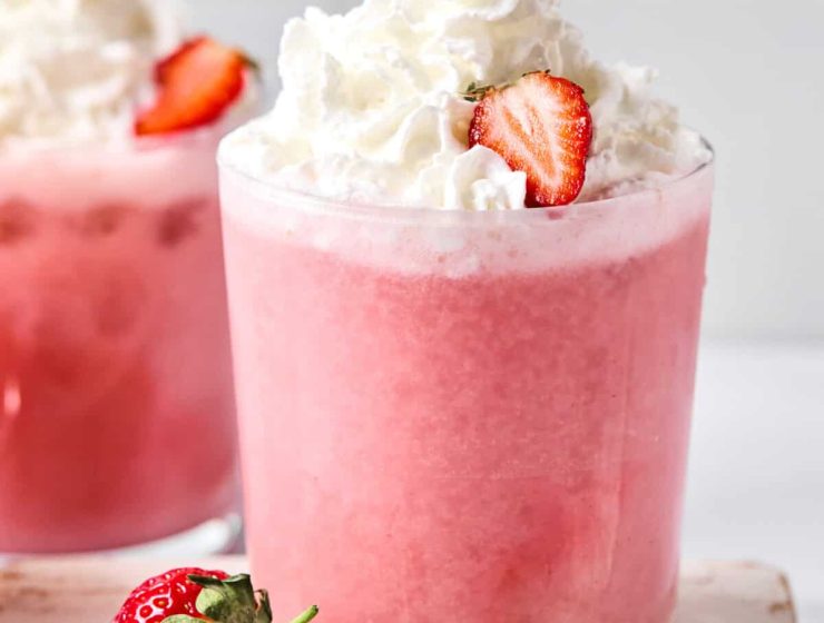 Easy Strawberries and Cream Cocktail Made with fresh strawberries, coconut rum, a splash of Coco…