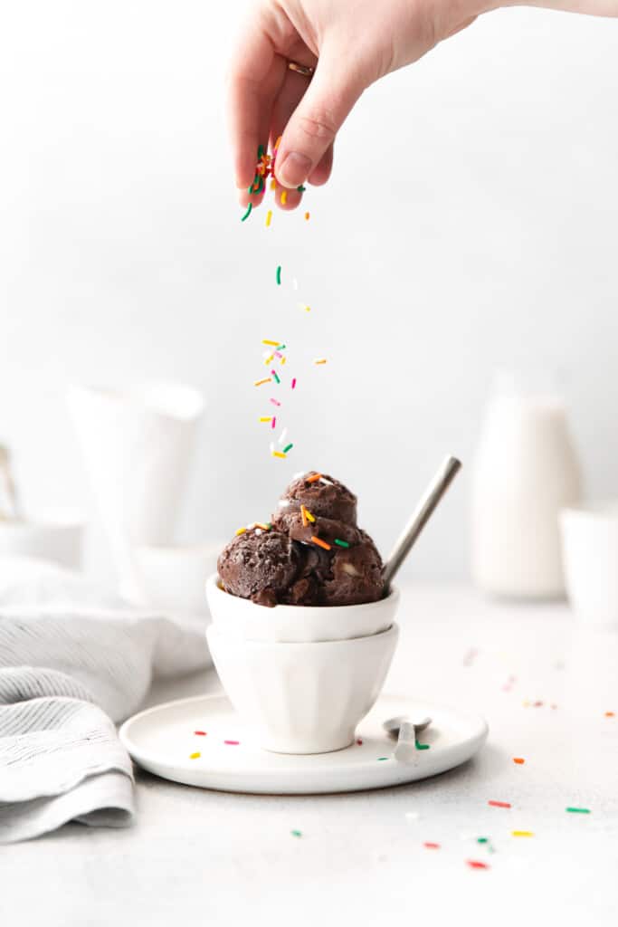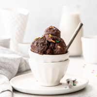 We’ve mixed up peanut butter chocolate chip banana nice cream and strawberry protein ice cream, but nothing beats chocolate!