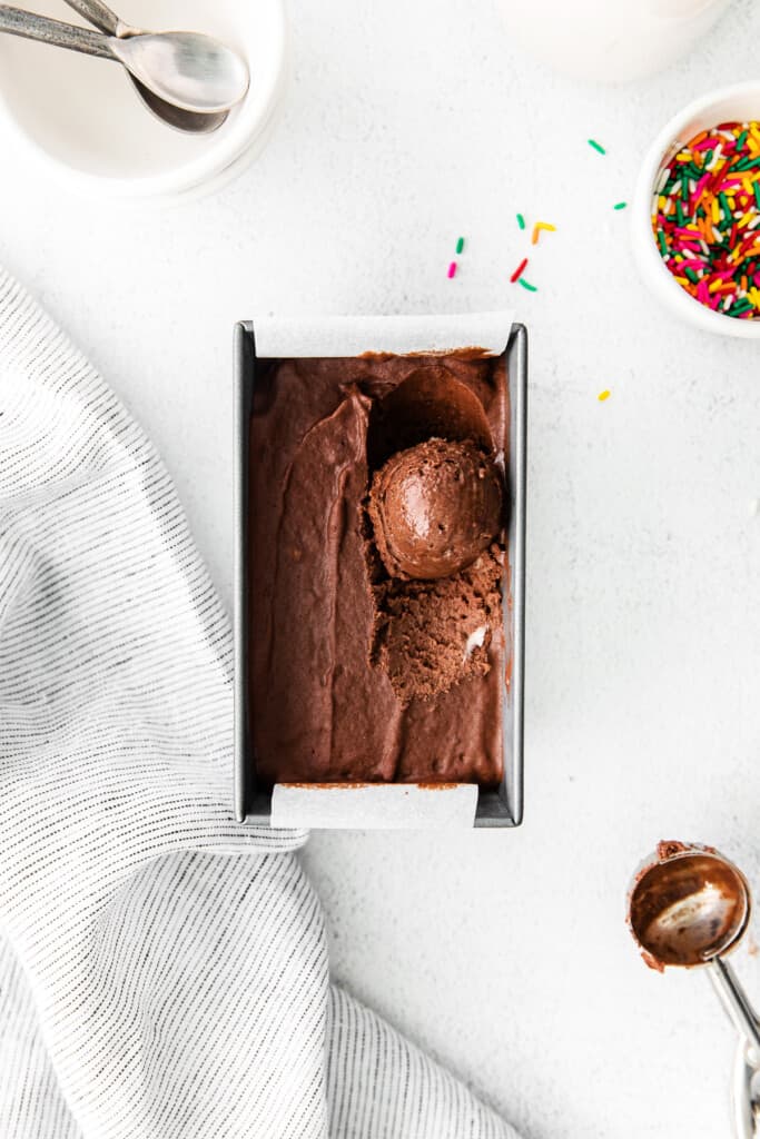 - Ice cream: line a parchment-lined bread loaf. Then, place into the freezer for 1 to 2 hours to firm up. Use an ice cream scoop to serve.