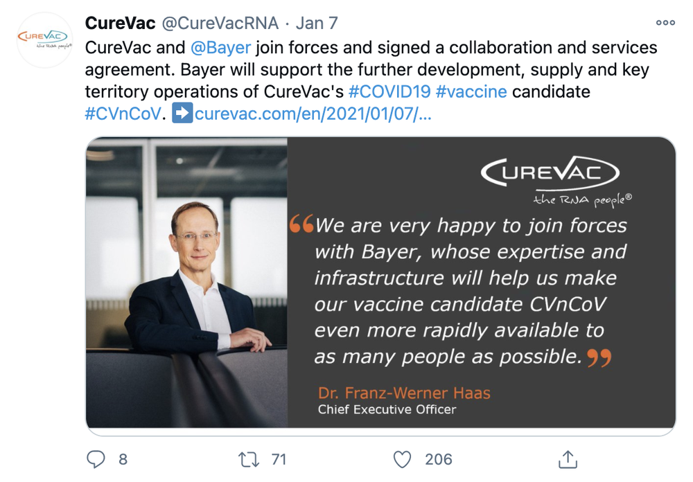 It is worth mentioning that Bayer and CureVac are in collaboration in the development of the coronavirus vaccine. Both companies have an agreement to support the production and commercialization of a messenger RNA vaccine to “facilitate the supply.”