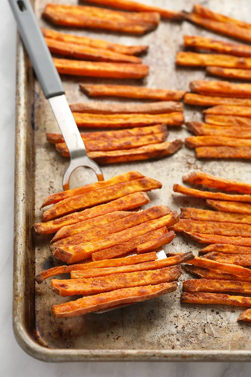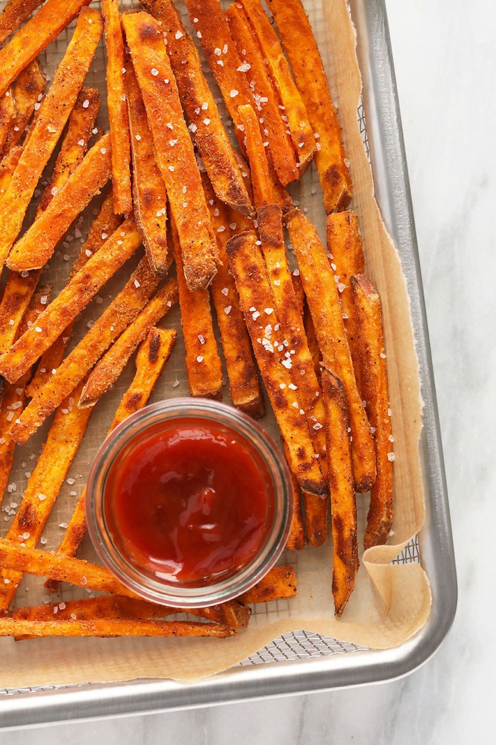 Perfectly crispy baked sweet potato fries ready in 30 minutes. In this post, we’re sharing all of our secrets for perfect crispy sweet potato fries every time!