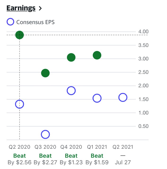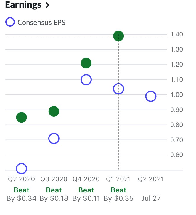 The chart shows that while ADM has beaten consensus EPS forecasts over the past four consecutive quarters, it blew away the Q1 expectations at $1.04 when it reported $1.39 on April 27. At $67.02 at the end of last week, ADM pays shareholders a $1.48 or 2.21% dividend. A survey of twelve analysts on Yahoo Finance has an average price target of $67.92 for ADM shares, with forecasts ranging from $53 to $78.