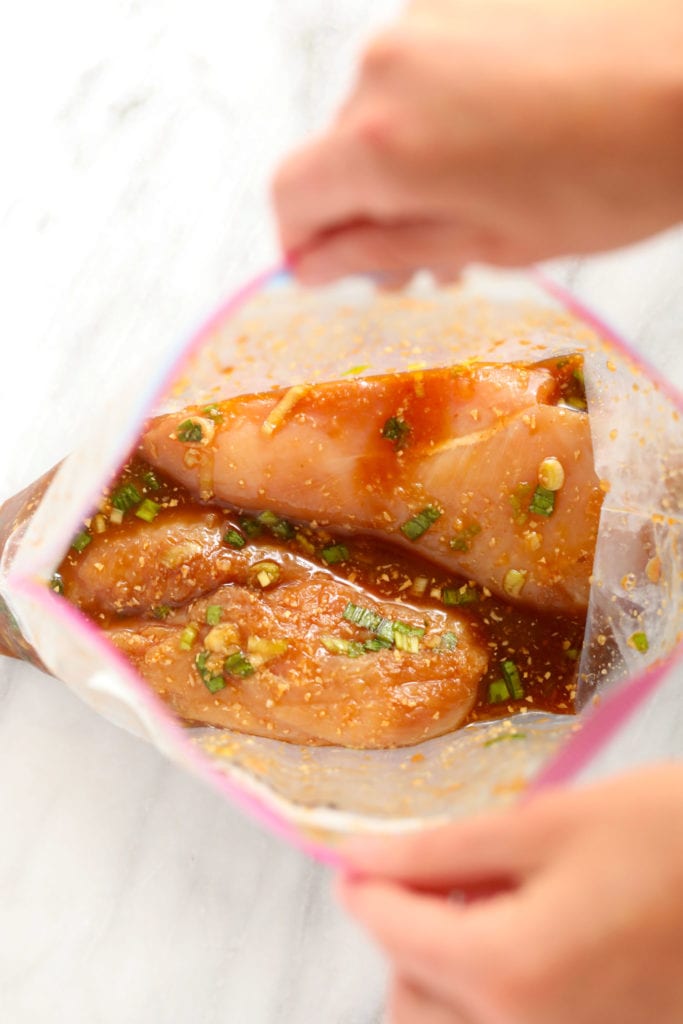 One of my favorite things to do with chicken marinades is to batch produce them and freeze for later! For example, you can make 3 or 4 batches of this teriyaki chicken marinade and freeze it for later. Here’s how to do it: