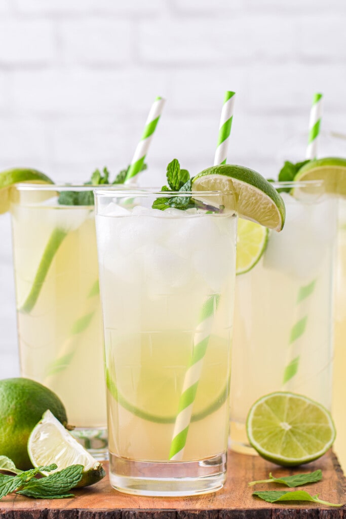 - Garnish with lime slices and fresh mint on each glass, optional.