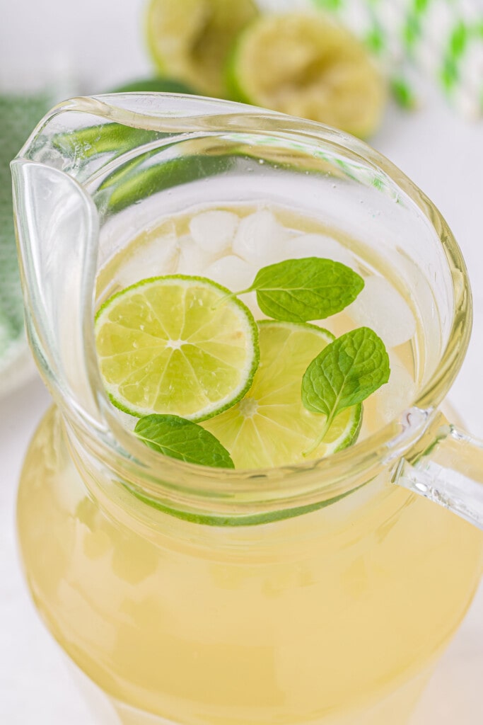 This limeade recipe is a great recipe to spike! Simply add 1.5 oz. of vodka to each serving of limeade, or 9 oz. of vodka for the entire pitcher.