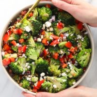 This broccoli salad can seriously be prepped and made from start to finish in 15 minutes! Whether you are looking for a healthy broccoli salad for dinner or a bbq side dish for your all the summer picnics or a potluck, this broccoli salad is your recipe.