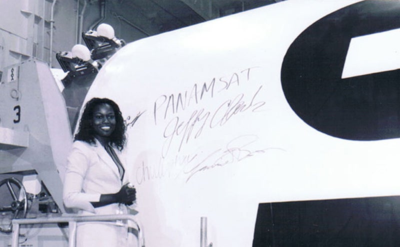 Spio signing one of the deep space rockets she helped engineer communications for.