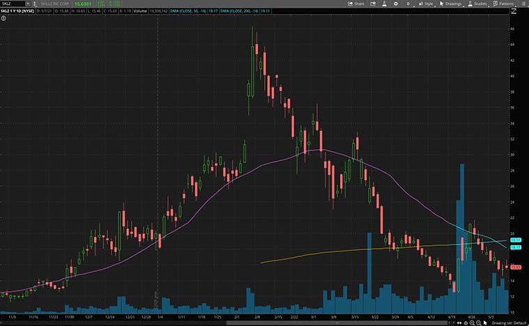 Skillz is an entertainment company that provides monetization services to game developers through mobile eSports platforms. The company’s principal activity is to develop and support an online-hosted tech platform. This would enable independent game developers to host tournaments and provide competitive gaming activity to end-users. Given how mobile gaming has risen to prominence in the last few years, could Skillz be on the uptrend too? Earlier this week, ARK Invest continued to add shares of Skillz to its actively managed exchange-traded funds.