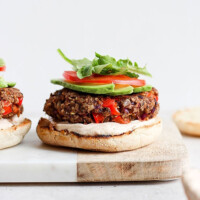 This black bean burger recipe is gluten-free and vegan. It’s high in fiber and protein and lower in fat.