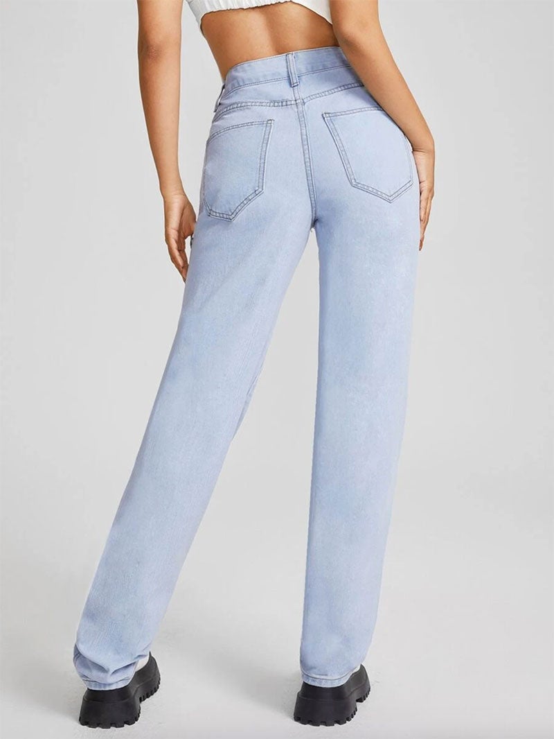 The jeans come with a standard button that closes just at the waist, with pockets and a covered butt, thankfully. In addition, they are straight cut from the high part of the thigh to the floor. They cost 566 Mexican pesos and sizes range from XS to L, of course, pantyhose are not included.