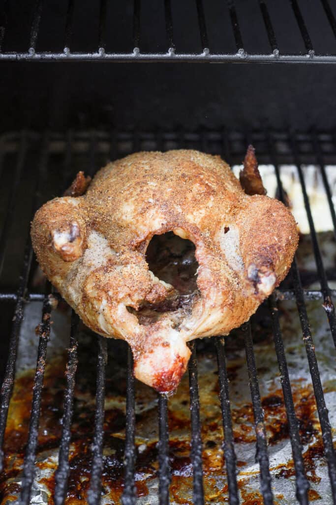 - This smoked chicken is rubbed (under the skin and on top) with a flavorful smoked chicken dry rub that adds so much flavor to the recipe.