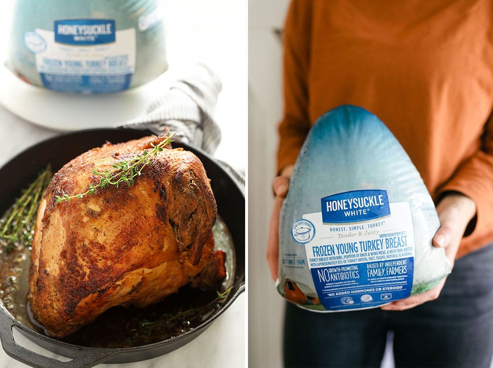 If you live in the midwest or western United States, find your Honeysuckle White Young Bone-In Turkey Breast by using this product tracker! If you live in the eastern part of the US, find your Shady Brook Farms Young Bone-In Turkey Breast (Honeysuckle’s sister brand!) here.