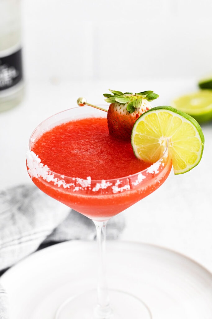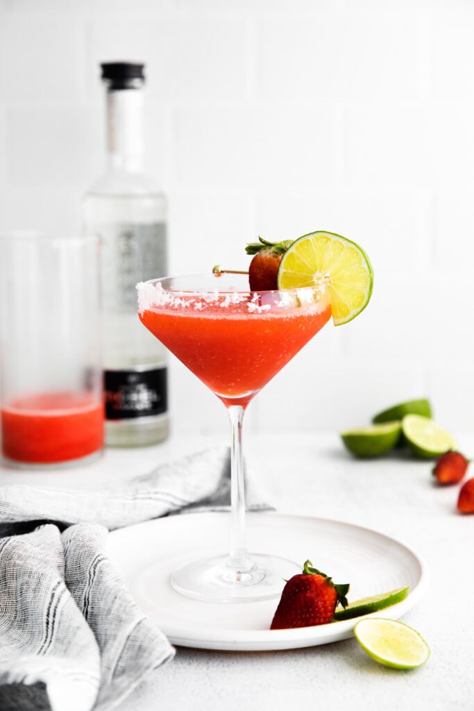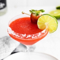This strawberry margarita recipe has such a lovely flavor profile. Think classic margarita flavors with a strawberry daiquiri texture.