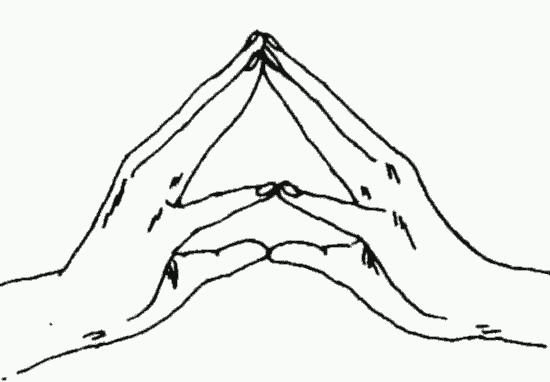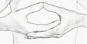 This mudra eliminates stress, renews the concentration of energy and places you in the present. It allows you to “clear the way” of everything that distracts you. In addition, it helps to find the perfect balance between thoughts and emotions. Place both of your hands so they rest on your lap; the right hand on top of the left in the shape of a bowl , while the thumbs touch. Direct your attention to your breath.