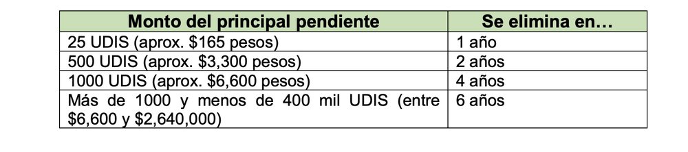 This Law, then, tries to downplay the importance of debts of high amounts and could generate a perverse attitude, when requesting credits of amounts up to $ 2.64 million, stop paying, and wait only 18 months for the credit to be eliminated from your history with impunity (loans of larger amounts are not eliminated, and I would assume that the proposal does not consider the reduction of the permanence in loans greater than 400 thousand UDIS).